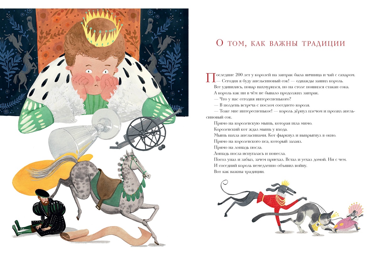 КнигиБыть королём — непростая работа. Столько всего надо переделать за день! Придумать указы, встретиться с послами соседних королевств, соблюсти традиции, съесть королевский завтрак, в конце концов. Легко ли быть королем? Об этом в целой россыпи смешных сказок Аси Кравченко — известного писателя, лауреата Международной премии им. В. П. Крапивина и победителя конкурса на лучшее произведение для детей им. Корнея Чуковского.